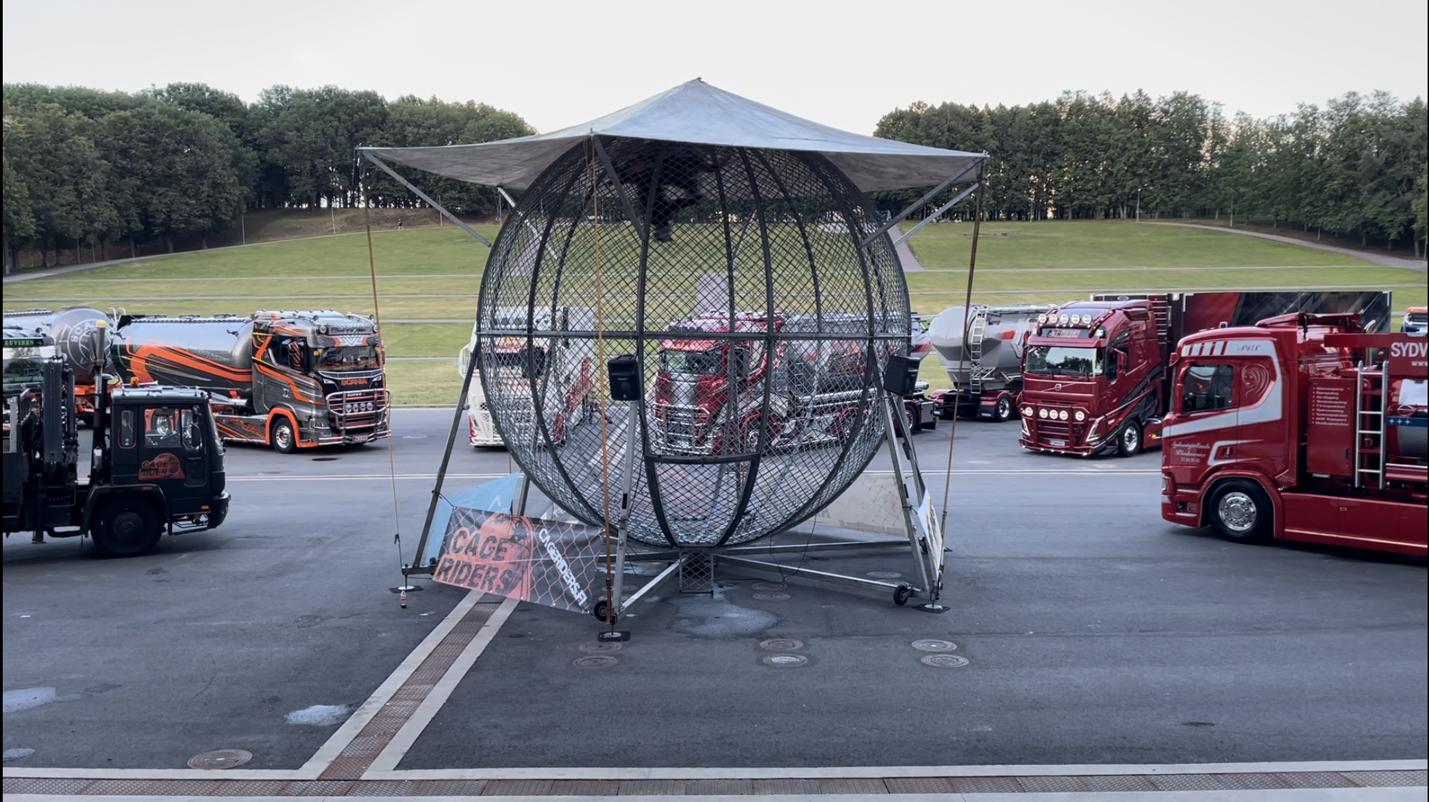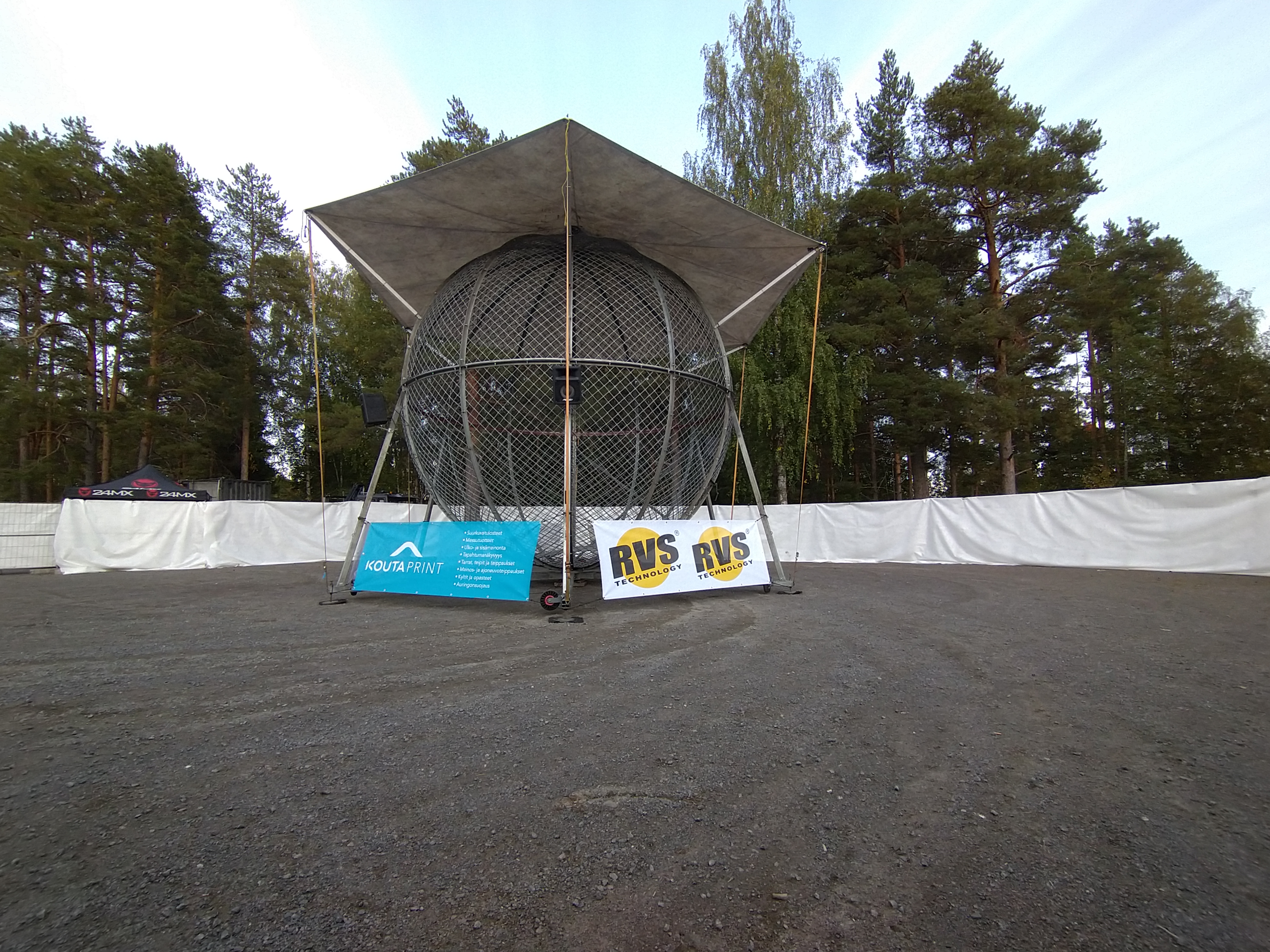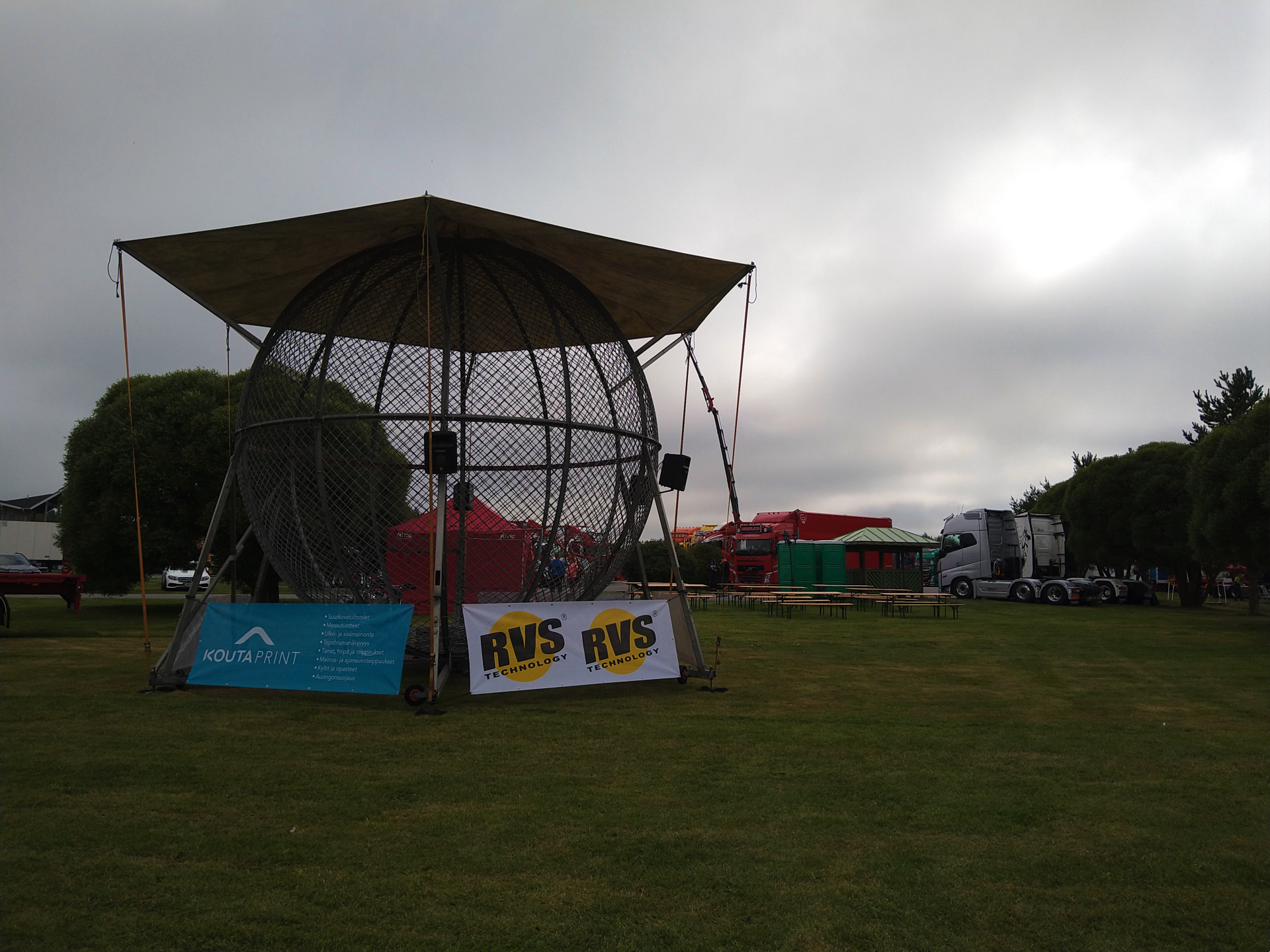 Perjantaina saavuttiin paikalle palloa kasaamaan ja säätiedotusta tutkittuamme tultiin siihen tulokseen, että varmin on pallolle "kurapuku" laittaa koska sateen uhka oli ilmeinen. Hieman katos näkyvyyttä haittaa niin katsojien kuin kuskienkin mutta päätös oli tällä kertaa oikea koska ensimmäisen ajon jälkeen vettä tulikin melko rajusti hetken aikaa. Jos katosta ei olisi laitettu niin toinen ajo olisi jäänyt ajamatta. Tällä kertaa sää suosi kuitenkin sadekuuron jälkeen ja toinenkin ajo saatiin ajettua kunnialla.